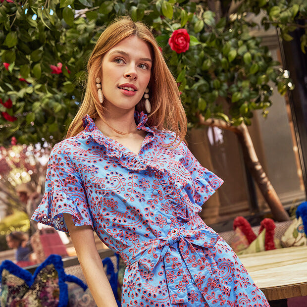 Piper Caftan Coral and Yellow Eyelet