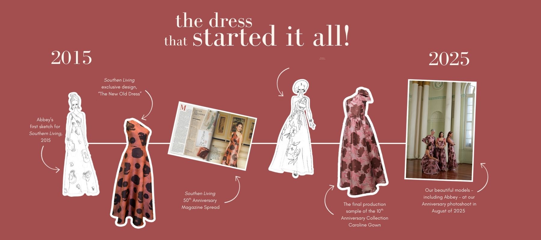Since 2015, Abbey Glass has dressed women for their most meaningful occasions. See the journey of timeless design—from our beginnings to the future we’re creating.