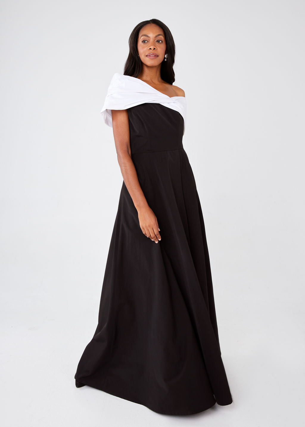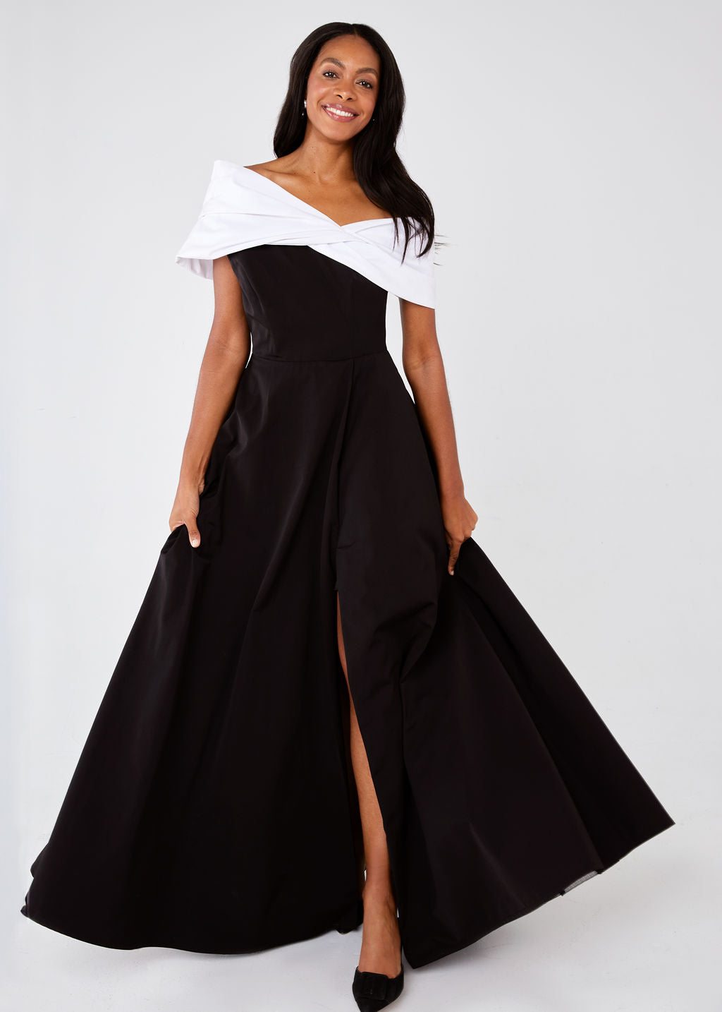 The Amelia Gown is the dramatic ball gown you've been waiting for! Featuring a flattering front slit, gathered asymmetrical off-the-shoulder neckline, and a voluminous ball skirt, this gown blends modern sophistication with timeless elegance. Perfect for weddings or formal events, simply add your favorite accessories and a heel to complete this show-stopping look.