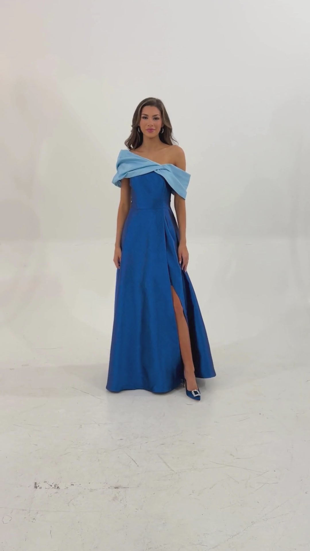 The Amelia Gown is the dramatic ball gown you've been waiting for! Featuring a flattering front slit, gathered asymmetrical off-the-shoulder neckline, and a voluminous ball skirt, this gown blends modern sophistication with timeless elegance. Perfect for weddings or formal events, simply add your favorite accessories and a heel to complete this show-stopping look.