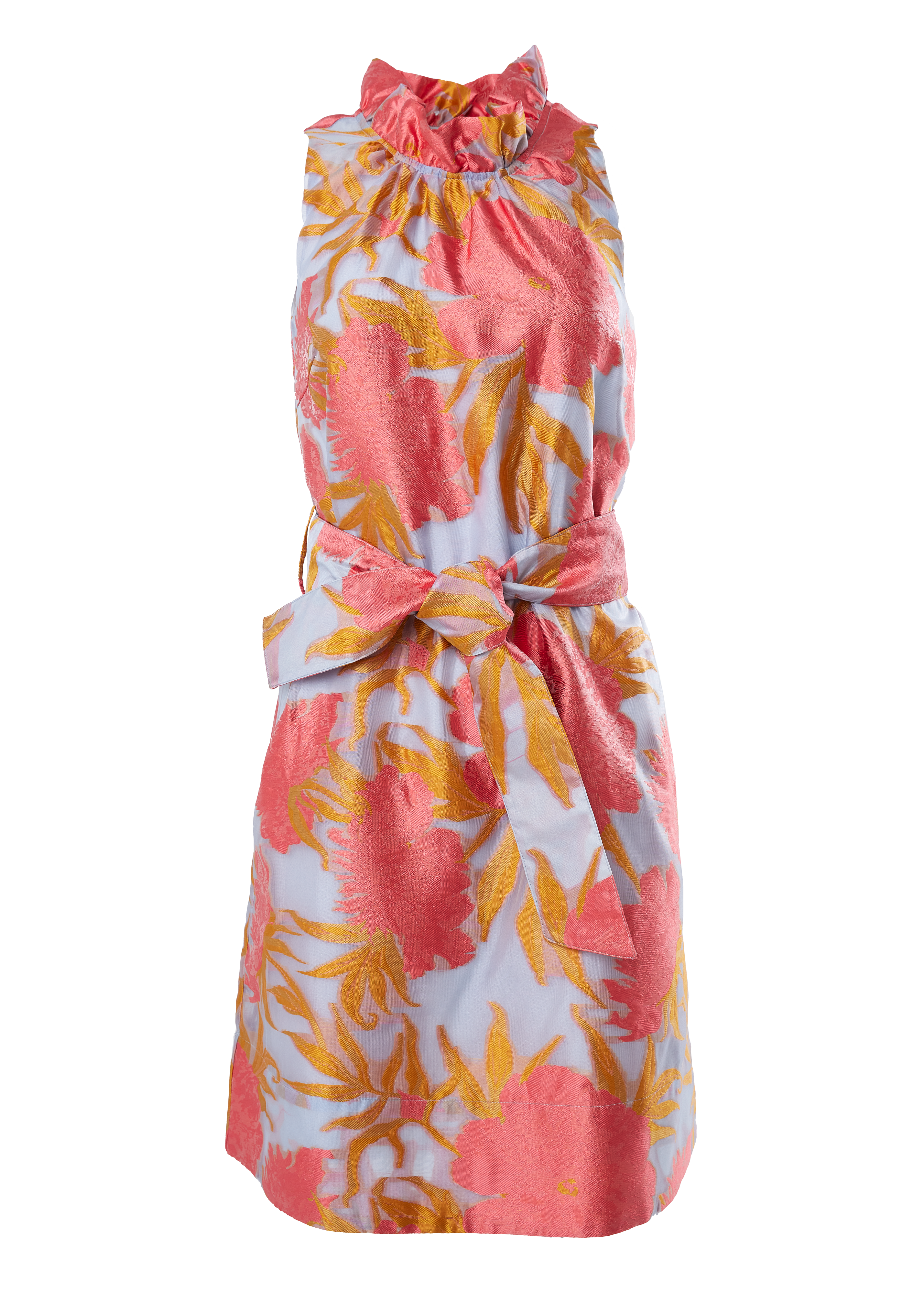 The Betty Dress is your go-to for effortless elegance year-round. Crafted in a striking hot coral pansy vine, this classic cocktail dress features a ruffled neck that adds instant polish. The versatile sheath silhouette is easy to wear, and you can cinch the waist with a belt for a flattering fit-and-flare look. Perfect for weddings, work parties, and family gatherings, pair it with your favorite bag and nude heels for a chic, all-season ensemble that exudes timeless style.