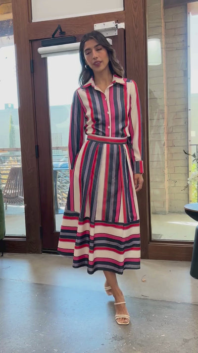 Catherine Skirt Carnation Coastal Stripe Jacquard