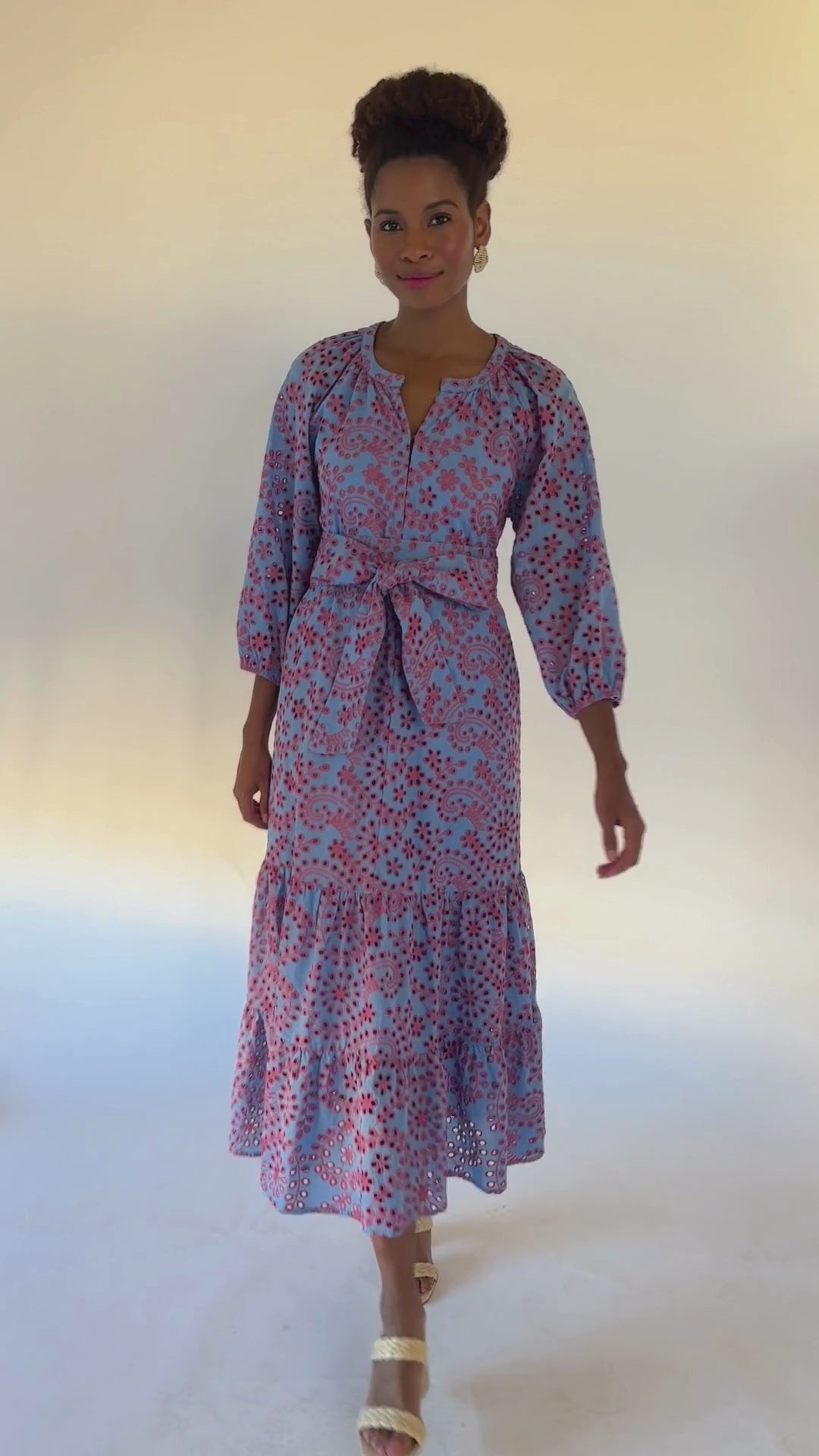 The Elise Dress in this colorful jasmine eyelet is a playful maxi with a tiered skirt and flattering V-neck, designed for an effortlessly chic look. Lightweight and airy, it’s perfect for throw-on-and-go daytime events. Pair it with sandals or wedges for a versatile warm-weather piece that elevates your wardrobe season after season.