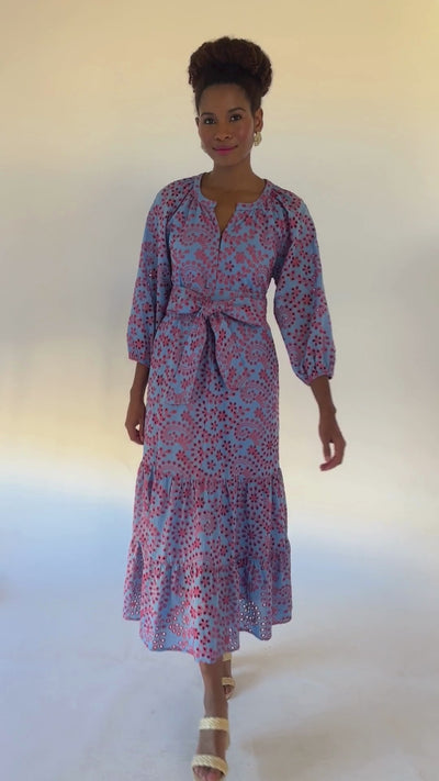 Elise Dress Blue and Pink Jasmine Eyelet