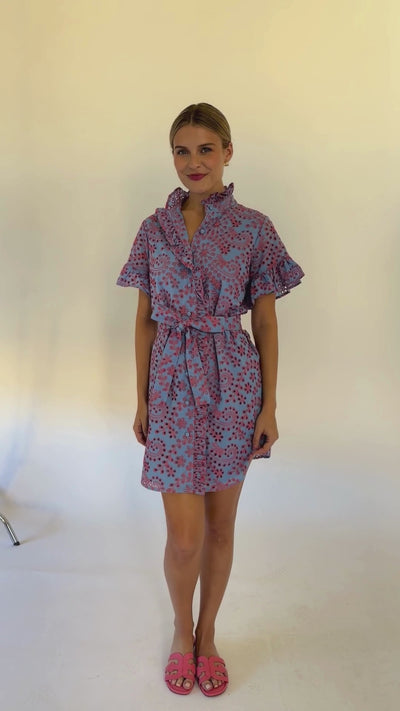 Katie Dress Blue and Pink Jasmine Eyelet