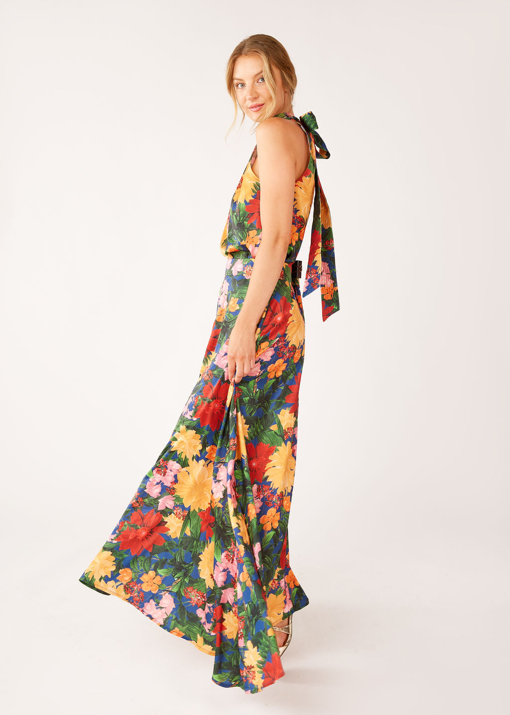 This dramatic maxi skirt features a statement center slit that takes its classic silhouette to the next level. Crafted in soft satin, the bold floral print is perfect for Fall formal events. Embody playful elegance in this skirt paired with our matching Rory top or a chic black turtleneck.