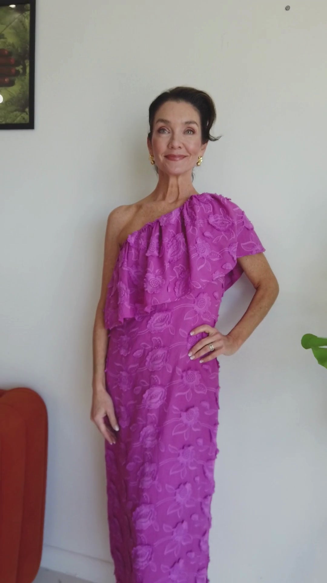 - Make: One shoulder with ruffle neck detail, side zipper closure, fully lined